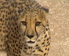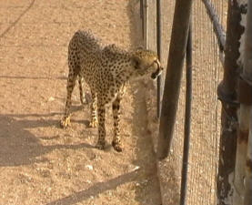 Auf der Farm Gariganus, auf der ein kleiner Obolus fuer die Besichtigung des Giants Playground und des Koecherbaumwaldes entrichtet werden muss, befinden sich drei verwaiste Geparden. Bei der Fuetterung kann man in das Gehege hineingehen, um dort unter Aufsicht die Tiere zu streicheln - auf eigene Gefahr!