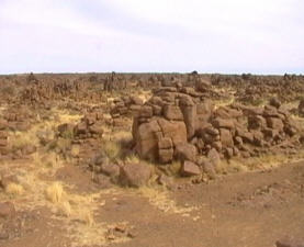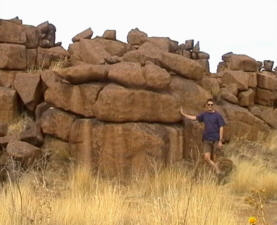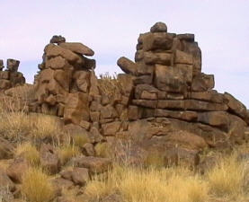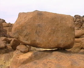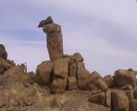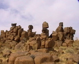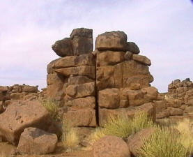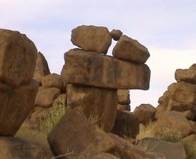 Am Giants Playground, dem “Spielplatz der Riesen” nahe Keetmanshoop, liegen auf einem Areal von 5 km Durchmesser zahllose Steine, die aufgrund der Blockverwitterung den Eindruck