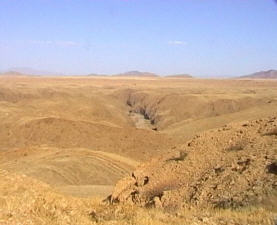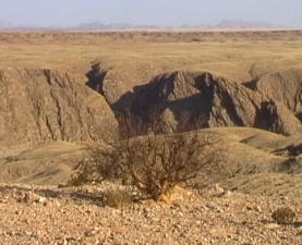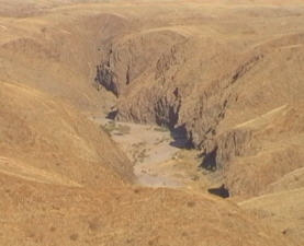 Am Rande des Namib-Naukluft-Parks befindet sich der Kuiseb-Canyon. Vor langer Zeit, als der Kuiseb noch viel Wasser mit sich fuehrte, schnitt er sich tief in das weiche Gestein