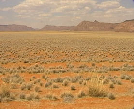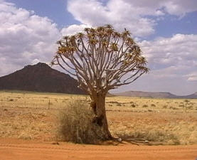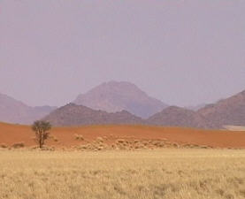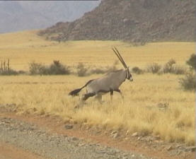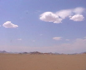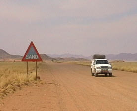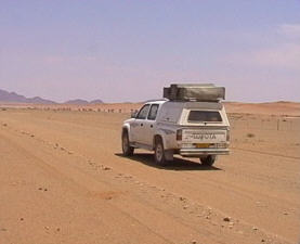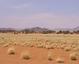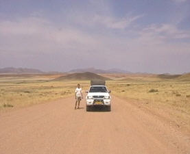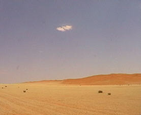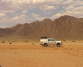 stundenlang am Rande der Namibwueste entlang. Waehrend 6 1/2 Stunden Fahrt sind uns ganze 4 Autos begegnet - alles Touristen! Hier herrscht Einsamkeit pur. Allerdings gibt es dort