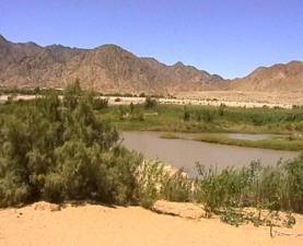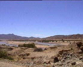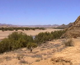 sich jedoch an die Angaben des Reisefuehrers, steckt man spaetestens 200 Metern nach Einbiegen in die vermeintliche Abkuerzung im Sand des falschen Flussbettes, in das auch zahlreiche Fahrspuren