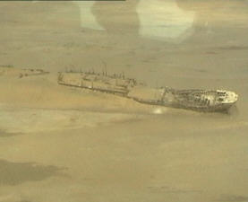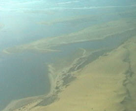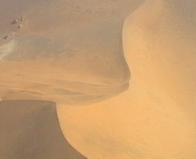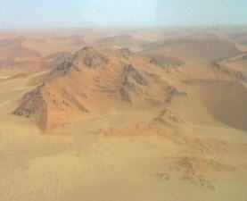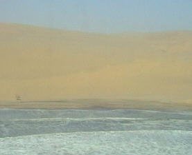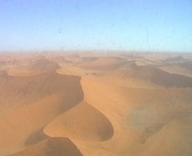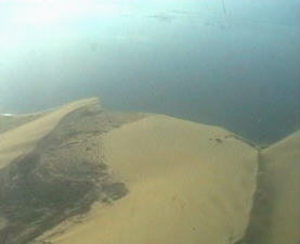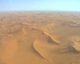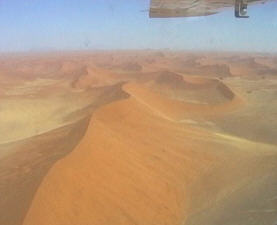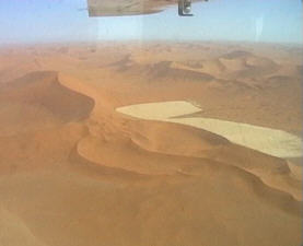 Von Swakopmund aus kann man einen Rundflug ueber die Duenen-Namib buchen. Auf- grund der kaum zu uebertref- fenden Turbulenzen allerdings nichts fuer diejenigen, denen schnell schlecht wird. Ich (Nick) habe zwar normaler- weise keine Probleme damit, kann aber von unserem Flug ein Lied singen: “Let it be...!”