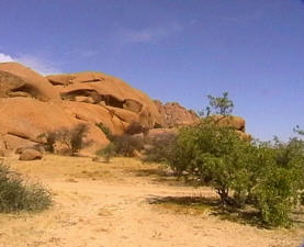 Vor etwa 70 Millionen Jahren drangen Magmamassen in den alten afrikanischen Gesteinssockel ein. Im Zuge der Erosion wurde dieses Gestein spaeter wieder freigelegt.