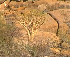 wunderschoenen Butterbaeumen (unten) naehert man sich besser auch nicht. Denn das Innere des Holzstammes wird regelmaessig von der roten afrikanischen Wuestenwespe als Brutstaette benutzt, was ich