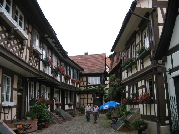 mit seinen Fachwerkbauten aus dem 18. und 19. Jahrhundert sowie die Engelsgasse mit Abgaengen zu den alten Wein- und Vorratskellern.