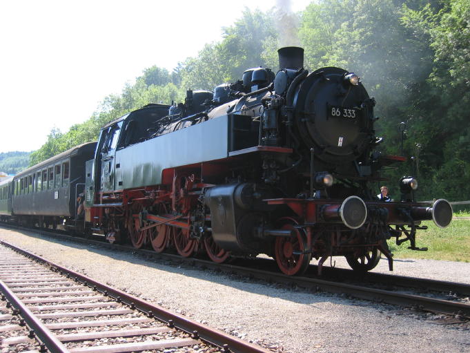 Etwa eine halbe Stunde dauert die romantische einfache Fahrt mit der historischen Bahn bis Weizen, die nur unwesentlich guenstiger als die Hin- und Rueckfahrt ist.
