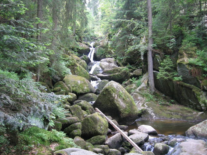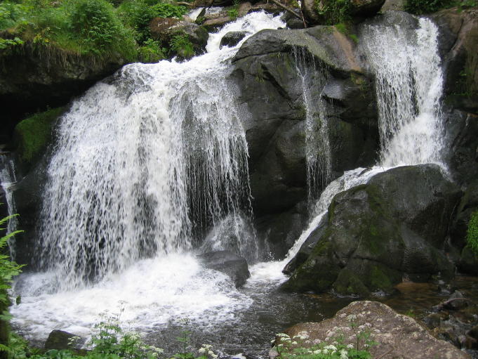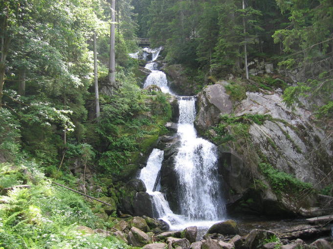 Toll sind die Triberger Wasserfaelle, die hoechsten Deutschlands. Auf betonierten Wegen kann man sie linkerhand emporlaufen. Wer schnell friert, nimmt sich besser etwas zum