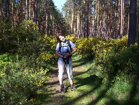 Praechtig bluehende Ginster saeumen den Wegesrand.