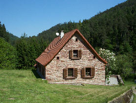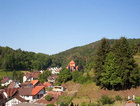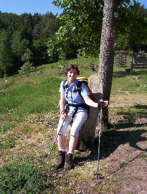 Ab hier folgt man entlang eines Baches der roten Markierung bis nach Hinterweidenthal. Die Etappe endet nach weiteren 35 Kilometern. Wir haben in der Pension “Zum Pfaelzerwald” uebernachtet.