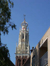 Blei verkleideten Kreuzigungsturm der spaetgothischen Kreuzbasilika hat man jedoch von der suedlich der Kirche gelegenen Strasse “Groenmarkt” aus (oben und links). Das Gotteshaus wurde zwischen 1390 und