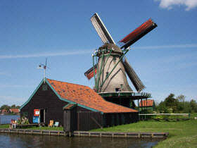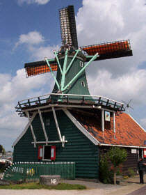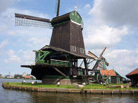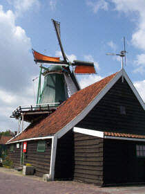 In dem etwa 20 km noerdlich von Amsterdam gelegenen bewohnten Freilichtmuseumsdorf Zaanse Schans stehen eine ganze Reihe von alten Muehlen, die liebevoll restauriert wurden und teilweise fuer Besucher zugaenglich sind.