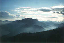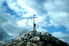 Auf dem Gipfel des Berges befindet sich ein Kreuz (rechts). Nun ist es geschafft, der Heim- weg kann angetreten werden.