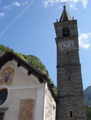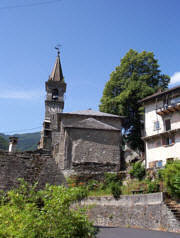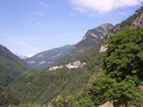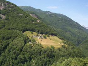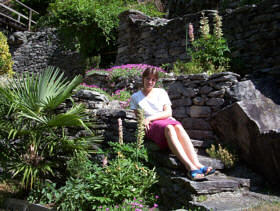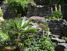 Unten: Ein tessiner Stein- garten hinter der Kirche von Russo.