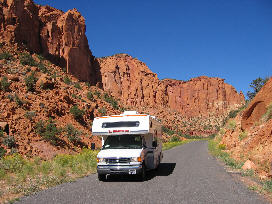 der sog. „Burr Trail“, der inzwischen etwa 30 Meilen weit betoniert ist, bevor er in eine schlechte Schotterpiste uebergeht.
