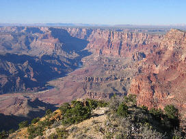 eignen, da man von dort aus lediglich nach Norden oder nach Westen, wo das diesige Gegenlicht stoert, in den Canyon hinab blicken kann.
