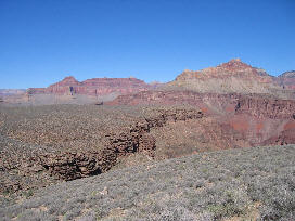 Unsere Wanderung fuehrte auf dem South Kaibab Trail 1.300 Hoehenmeter hinab, einige Kilometer auf dem Tonto Trail nach Westen und – am selben Tag – den Bright Angel Trail (mit