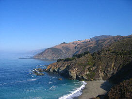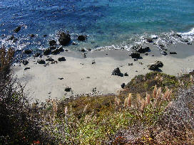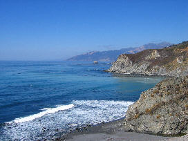 30-35 Meilen noerdlich von San Simeon einen wunderschoenen Campingplatz entdeckt und uns spontan entschlossen, die vorletzte Nacht dort zu verbringen (rechts).