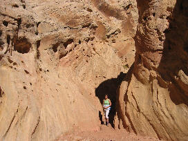 Der Little Wild Horse Canyon ist ein echter Narrow-Canyon. Ueber eine Distanz von etwa 3 Kilometern hat sich das Wasser hier seinen Weg in einer teilweise nur 50 cm breiten, jedoch 20 Meter