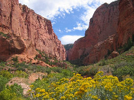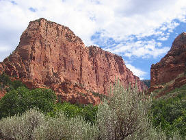 Von hier aus fuehrt die Kolob Canyons Road durch wunderschoene Landschaft hinauf zum Kolob Canyons Viewpoint. Die Aussicht ist an sich schoen.