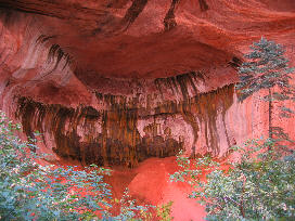 Double Arch Alcove, einem uebereinander gelegenen doppelten Felsbogen mit wunderschoen knallrot gefaerbtem Sandstein – fantastisch!